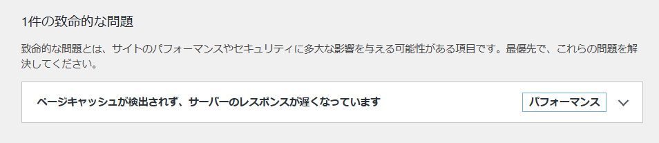 ヘルスチェックで「ページキャッシュが検出されません」の警告